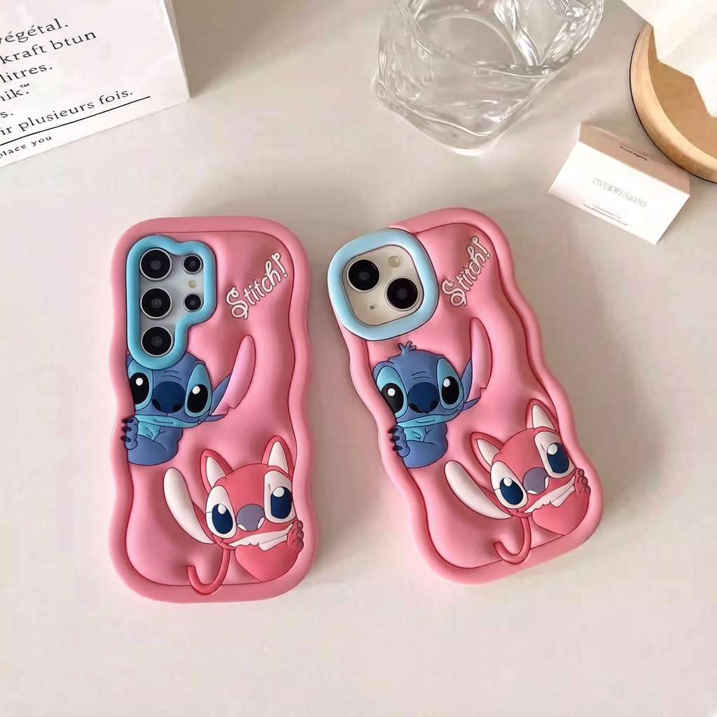リロ・アンド・スティッチ スティッチ&エンジェル 立体シリコン 耐衝撃 カートーン iPhone & サムスン スマホケース
