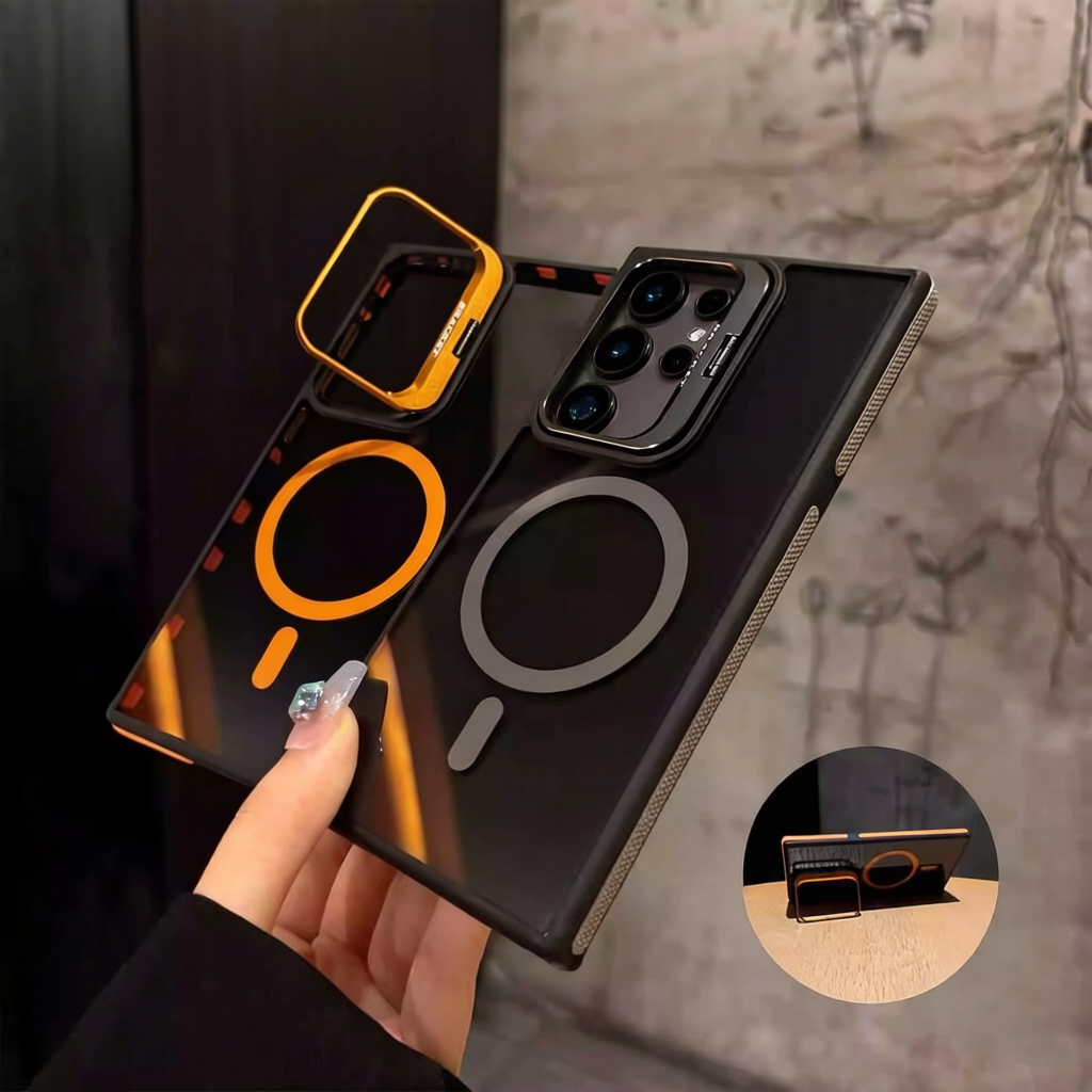創殼者 対応機種:Samsung Galaxy S22〜S26 Ultra スマホケース 滑り止め マグネット レンズプロテクター付き 透明ブラック 高級感 ニッチ新作 個性 軽奢華 人気モデル