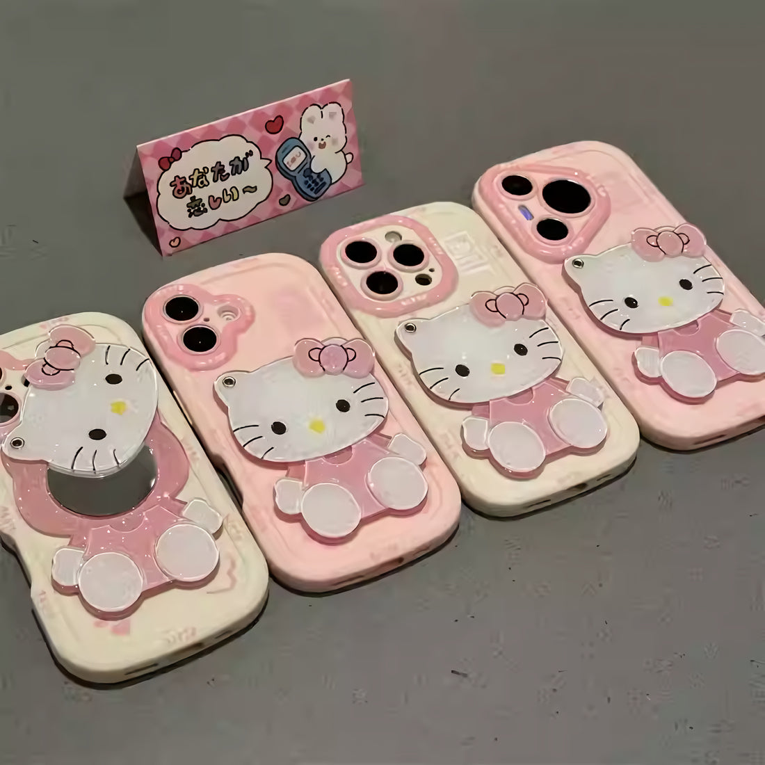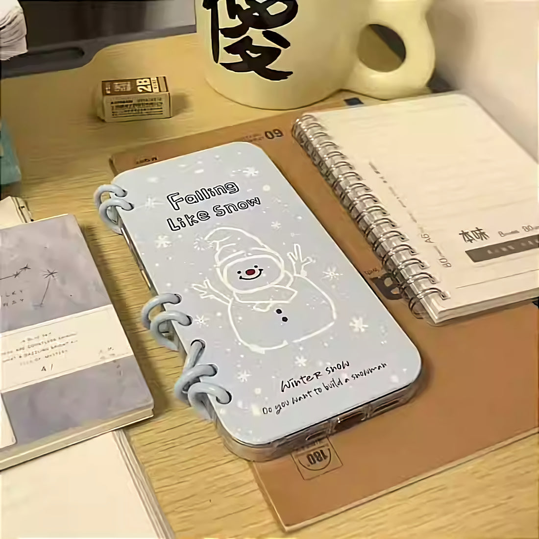 雪の結晶と雪だるま、ハローキティ ノートパソコン型 折りたたみ スマホケース スタンド付き iPhone用 隠しスタンド 女子向け 高見え かわいい