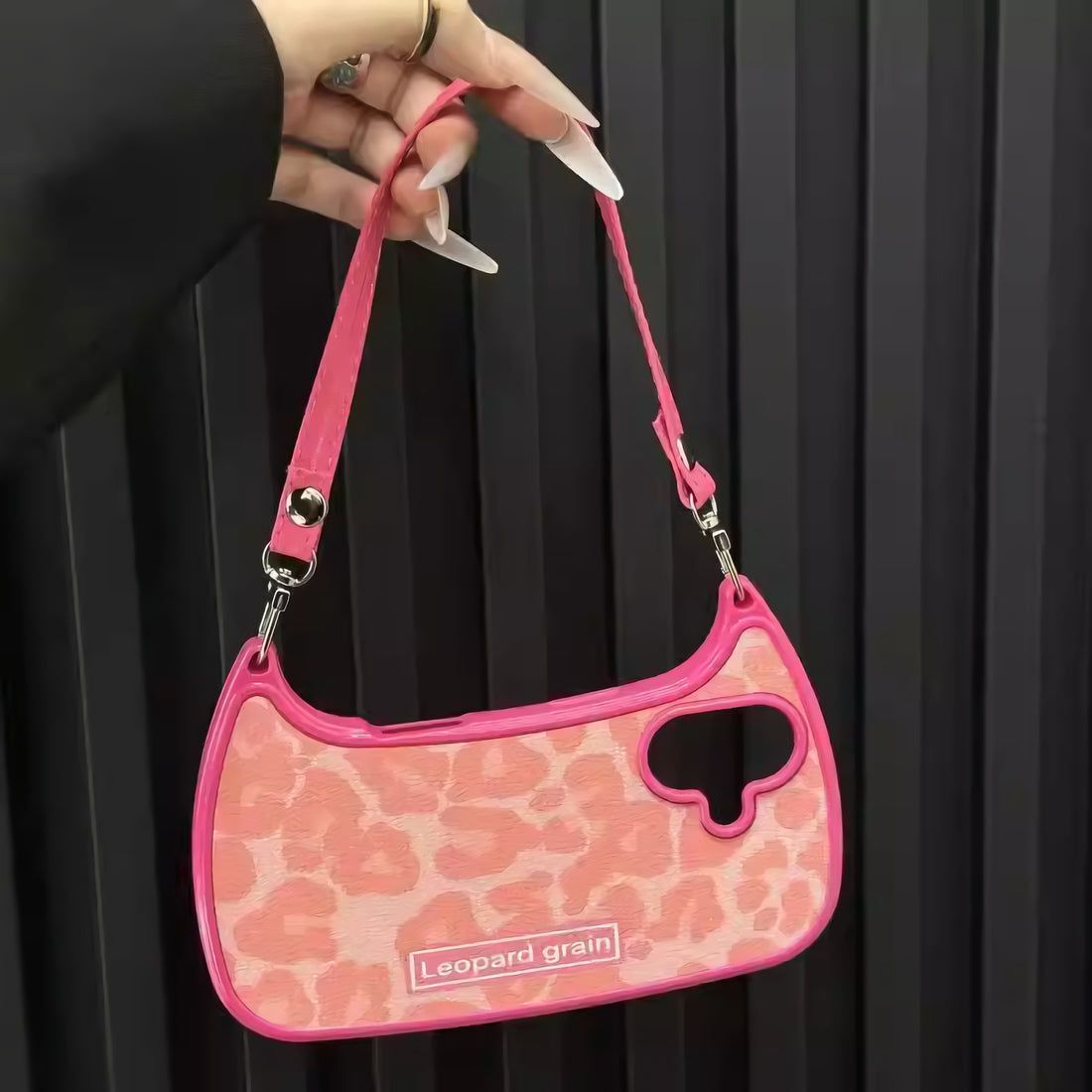 オシャレなキティ豹柄 ハンドストラップ付きケース iPhone 16/15/14/13 Pro Max ギャル系 iPhone 12 用